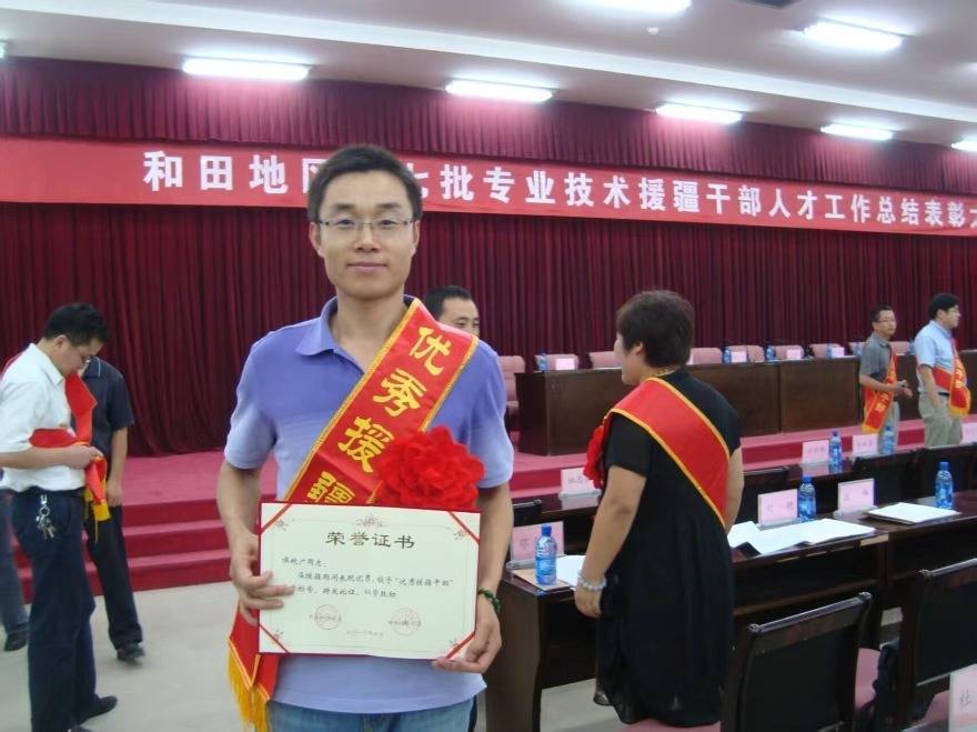 r1981年,侯纯广出生在安徽利辛一个普通家庭。2005年,从师范院校毕业后,他回到家乡,成为利辛县第一中学的一名化学教师。2010年,安徽省启动援疆计划,消息传到学校时,许多教师还在犹豫——新疆和田,气候干燥,离家万里,语言不通,教学条件艰苦。但侯纯广没有迟疑,第一时间递交了申请。