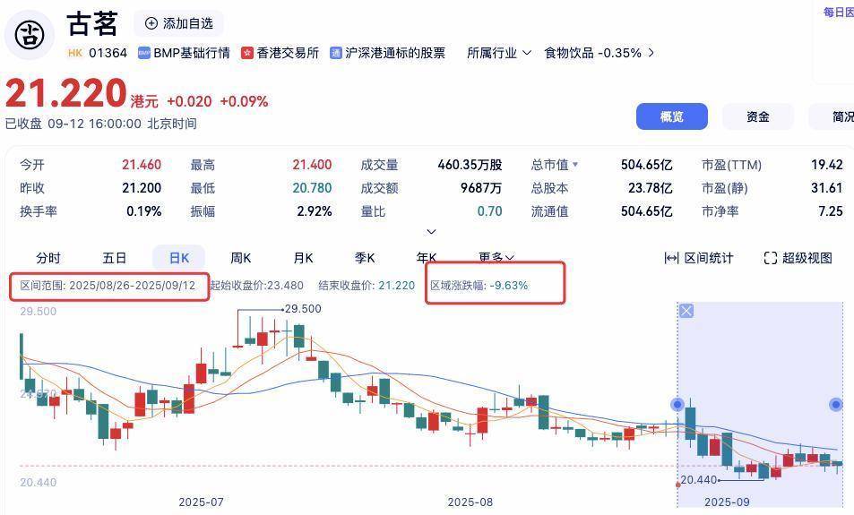9月12日盘后,古茗市值504.65亿港元,仅为蜜雪冰城的三分之一。营收和利润差距虽已缩小至2.6倍、1.7倍,但市值差却依然遥远。更微妙的是,财报发布次日股价不涨反跌,14个交易日整体跌幅达9.63%。