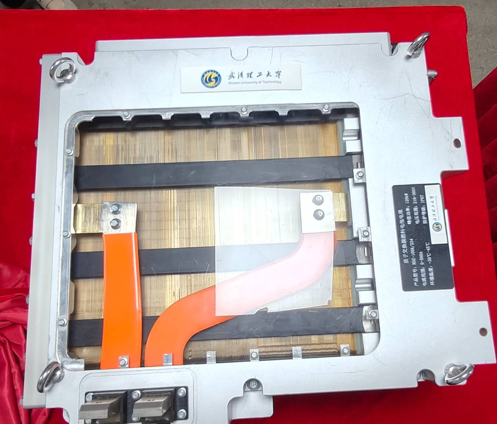 公司展厅内展示的质子交换膜燃料电池电堆样品。湖北日报全媒记者 汪洋 摄