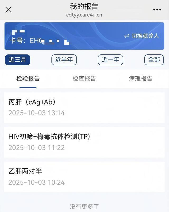 乔先生表示,事情发生后他最担心的就是健康问题。“我和我的同行人员10月2日下午就前往成都市第三人民医院进行检查,查了HIV、梅毒、丙肝和乙肝四个项目,结果都是阴性。”不过医生提醒他们,病毒存在窗口期,后续还需多次检测才能排除感染风险。
